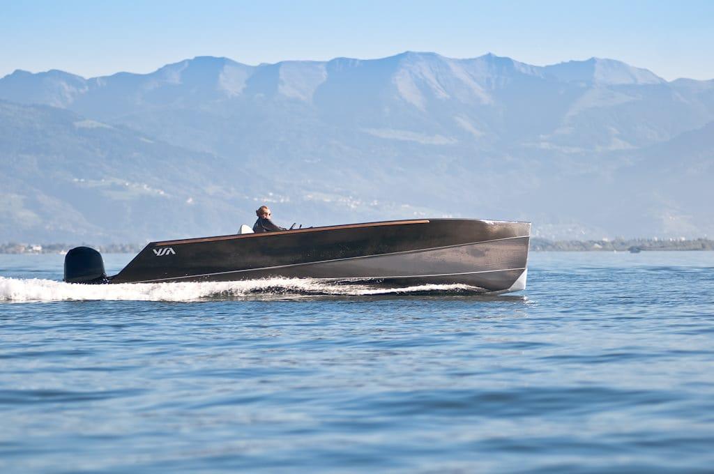 Die aus Carbon gefertigte YSA-Power ist 8 Meter lang, 2,5 Meter breit und mit einem 100 PS starken Mercury ausgestattet. Die YSA Werft mit Sitz in Wasserburg am Bodensee fertigt hochwertige Yachten aus Carbon. Eigentlich ein schwieriges Unterfangen im Oktober noch einen Tag zu finden der ein solches Objekt der Begierde im rechten Licht erstrahlen lässt, aber selbst Petrus war beim Anblick so erfreut das er uns einen perfekten Herbsttag für das Fotoshooting auf dem Bodensee spendierte.